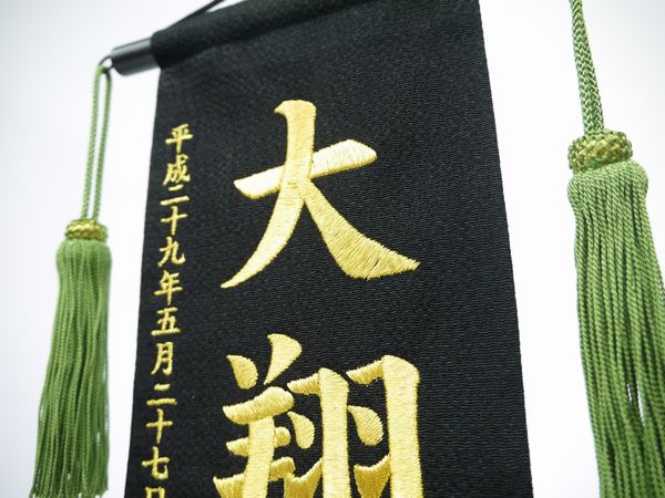 ちりめん刺繍名前旗(黒)伊達兜(特中)