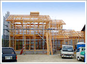 当社は、良質な天然木材にこだわり、昔から日本で造られてきた木造軸組工法(柱や梁などの軸組で重さを支え、筋交いなどの斜めに入れた木材で骨組みを補強する工法)を採用しています。