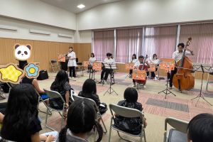子どもたちに「音楽を届けるプロジェクト」で、一般財団法人100万人のクラシックライブの吉岡麻梨さんと山崎未南さんが来園し、ピアノとヴァイオリンでクラシックの演奏をしてくださいました。楽器の生演奏を聴く機会はあまり無いため、子ども達の良い経験となりました。素敵な音楽を届けてくださり、ありがとうございました。